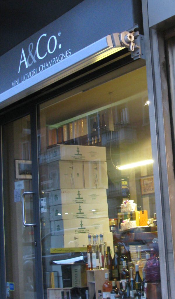 Vendita che propone interessanti etichette italiane, ma soprattutto molte straniere, in particolari champagne e anche degli interessanti Bordeaux. Ampia( per lo spazio disponibile) la selezione di liquori, tra cui Porto e Whiskies.