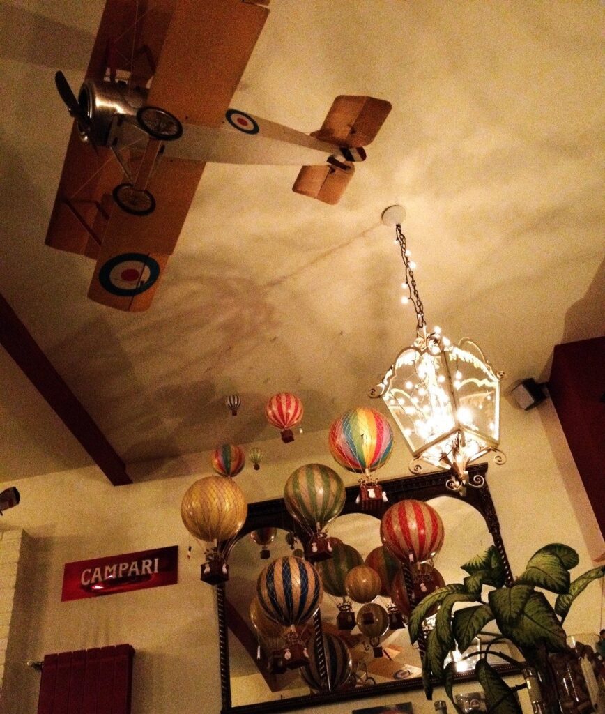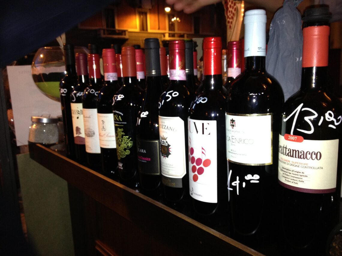 Il locale non è grande, una decina di tavolini, ma pieno di bottiglie, specchi, fotografie ed oggetti piuttosto inusuali per un’enoteca, ma che lo rendono sicuramente originale, rendendo l’ambiente accogliente e quasi creando una separazione con la confusione ed il caos tipico di certi giorni sui Navigli.