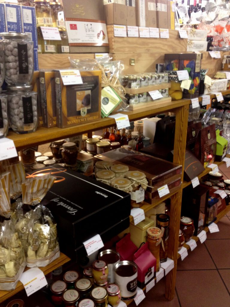 L’enoteca prosegue in un corridoio pieno di formati speciali, per poi arrivare ad una sala rettangolare dove troviamo oltre a diverse specialità gastronomiche, i vini rossi, i bianchi e gli spumanti italiani.