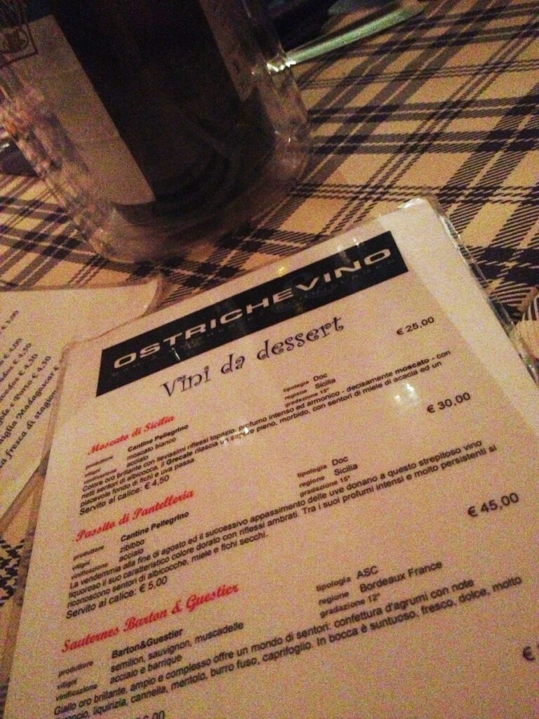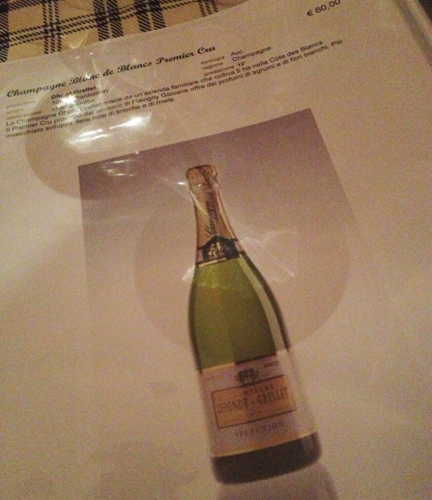 Dicevamo del vino. La carta vino contiene un buon numero di etichette, con quasi una decina di etichette di champagne ed ovviamente attenzione più ai vini bianchi (principalmente italiani) che rossi.
