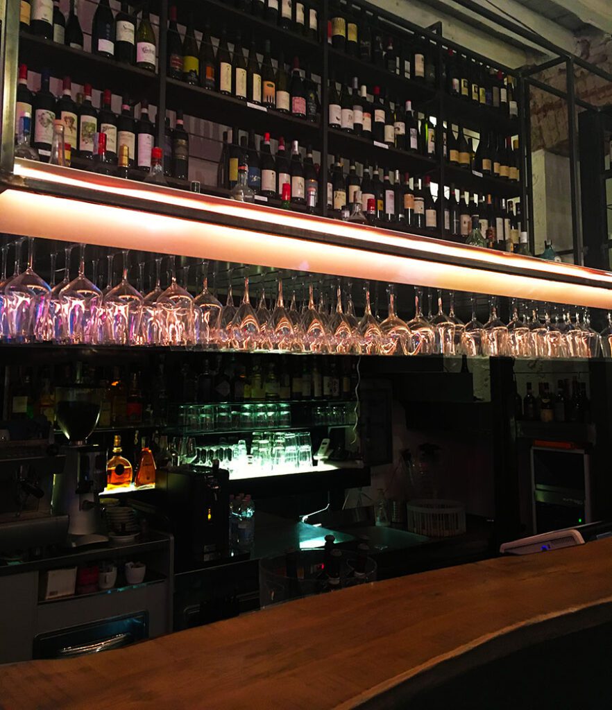 Invece, e qui sta anche il suo nome, prosegue lateralmente, con altri tavolini e distese di bottiglie. Arrivati in fondo al locale si sale qualche gradino e si torna indietro su un nuovo percorso, sospeso e ricco di bottiglie a vista e qualche tavolo.