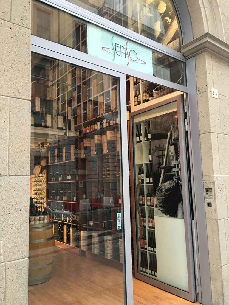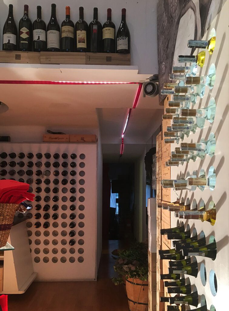 La vetrina è minimalista, ma tutto il piccolo locale da un senso di accoglienza, con l’illuminazione naturale che di giorno sembra renderlo più grande di quello che è (grazie anche alle alte volte sfruttate per ospitare le bottiglie già aperte e fare un bel gioco di luce).