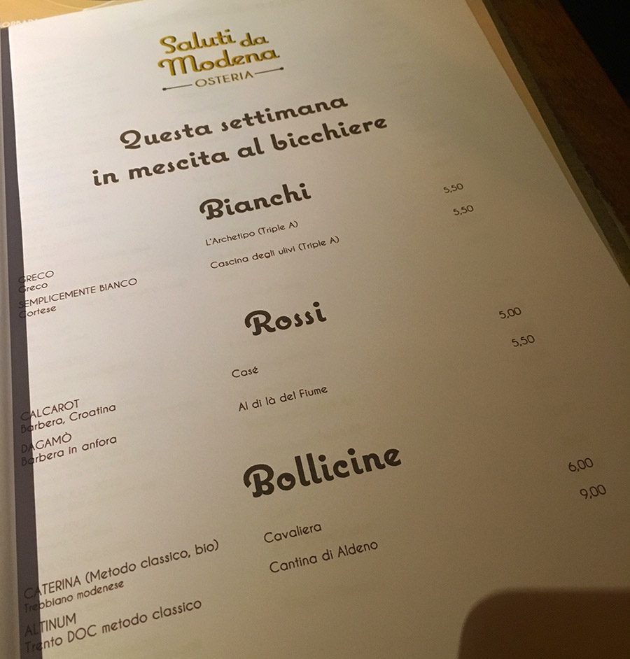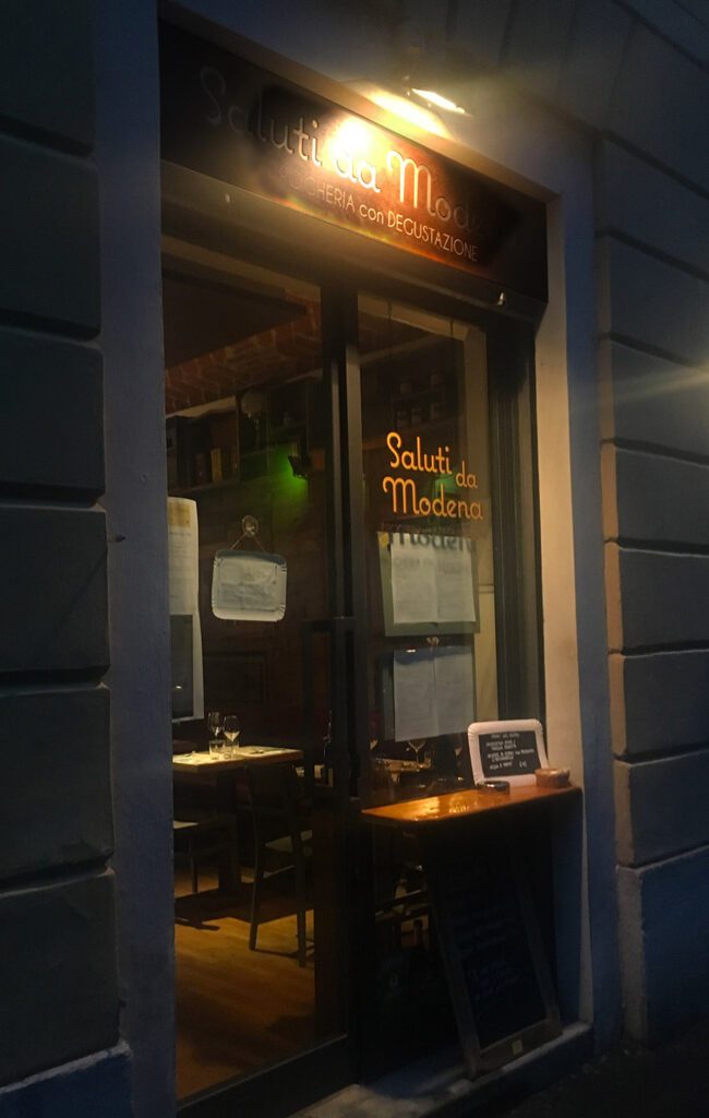 Saluti da Modena è un locale ad una vetrina che attira per l’insegna semplice ma visibile e le lavagnette che quasi giornalmente indicano menu e nuovi arrivi.