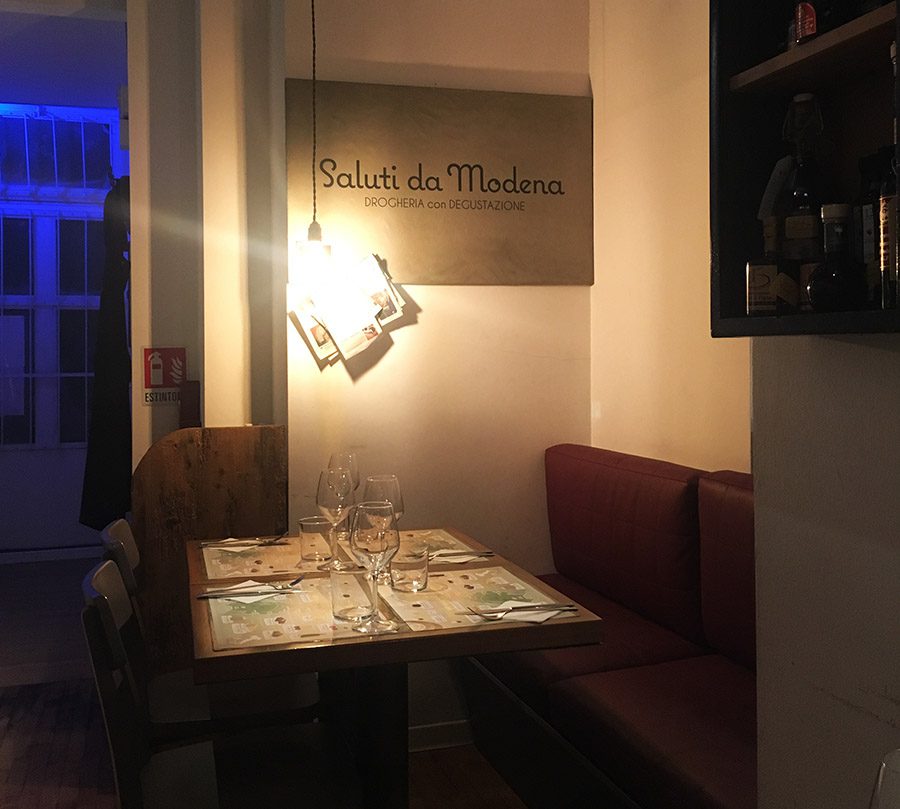 Saluti da Modena è più locali in uno. E’ drogheria di prodotti tipici modenesi e emiliani. Un ristorante con specialità delle terre che porta il nome. Un’enoteca dove accompagnare un calice con tigelle o salumi del posto.