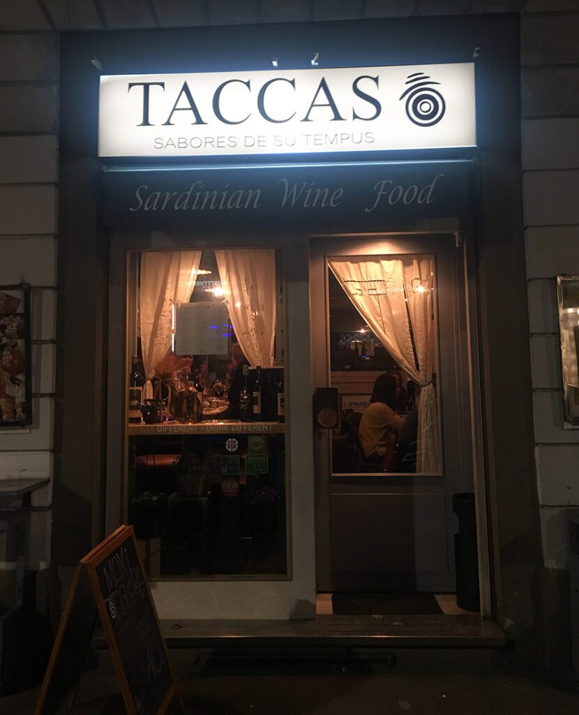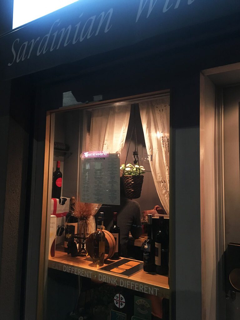 Siamo in zona Porta Venezia, sempre più viva e piena di locali. Tra questi Taccas, enoteca/laboratorio tutto dedicato alla Sardegna. Una sola vetrina ben illuminata e che già dall’ingresso, da l’idea di un posto piacevole.